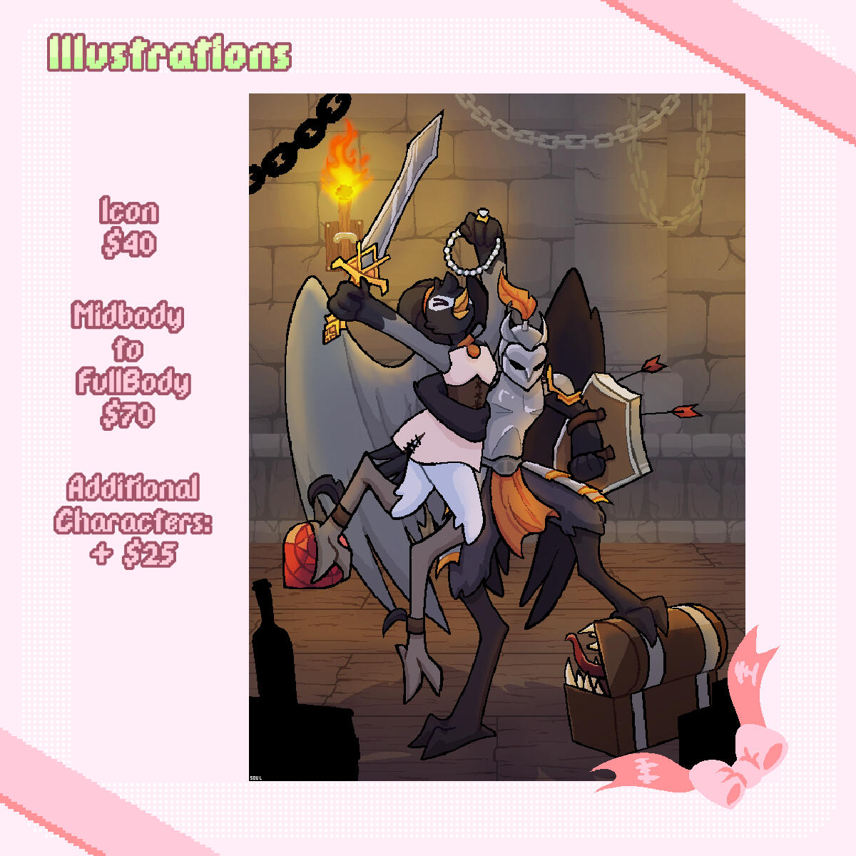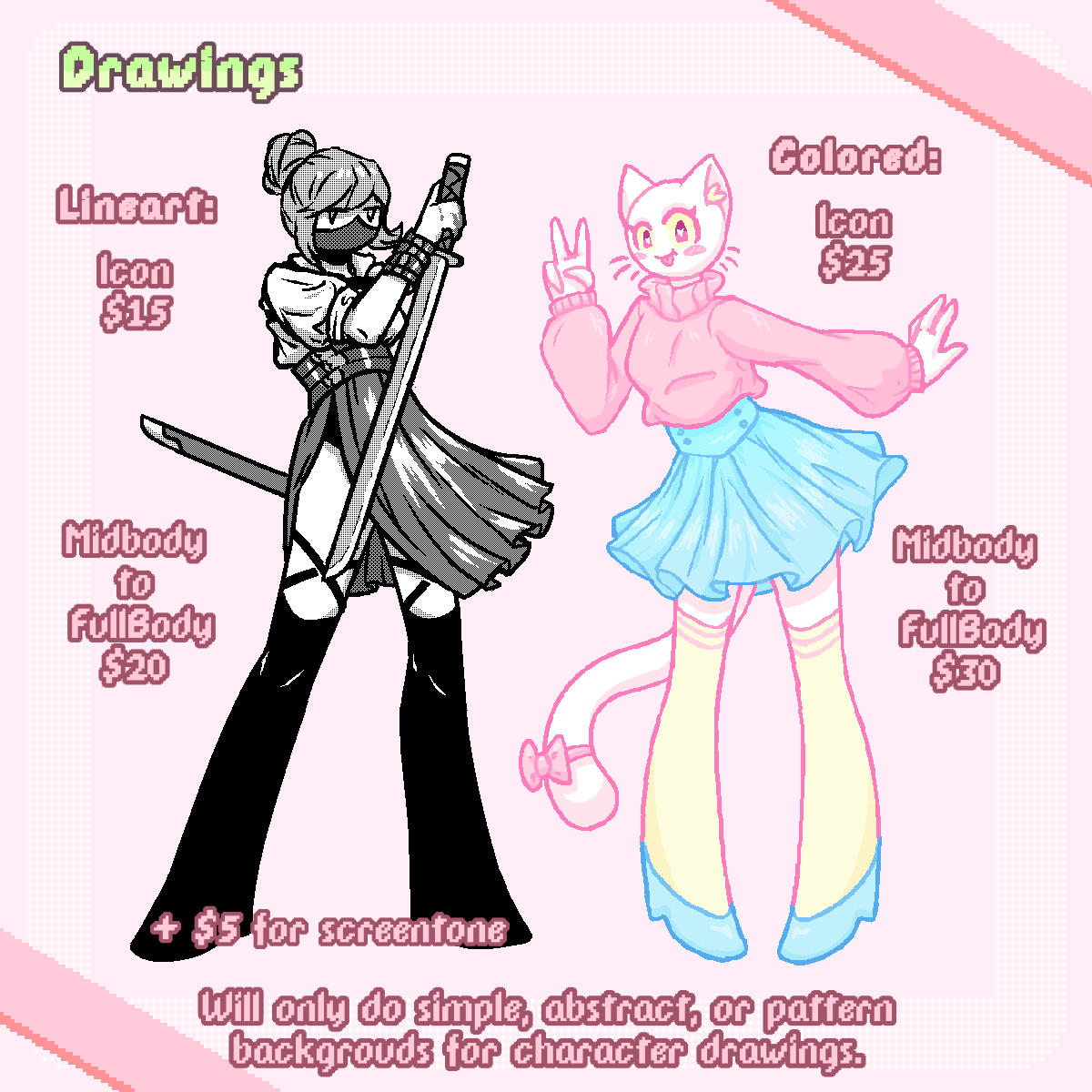 Commissions can be paid either 100% upfront, or 100% after first sketch/mock up.